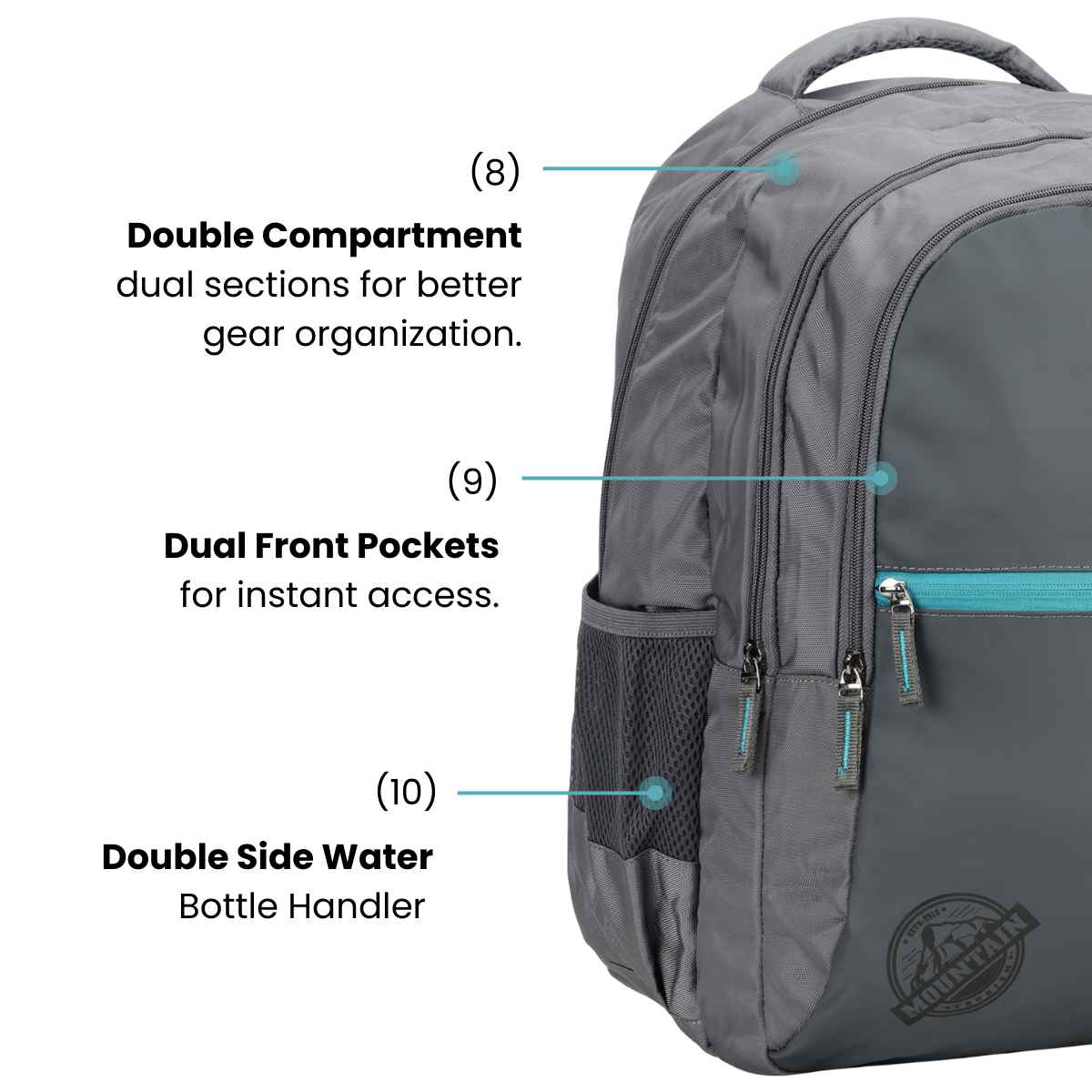 The Orbit Backpack is a stylish and functional everyday essential made from durable polyester fabric. It features a dedicated laptop compartment, two spacious main compartments, multiple organizer pockets, and front storage to keep your essentials neatly arranged. Designed for comfort, it includes padded back support, adjustable cushioned shoulder straps, a soft handle, dual water bottle holders, and a rain cover—making it perfect for school, office, or travel.
