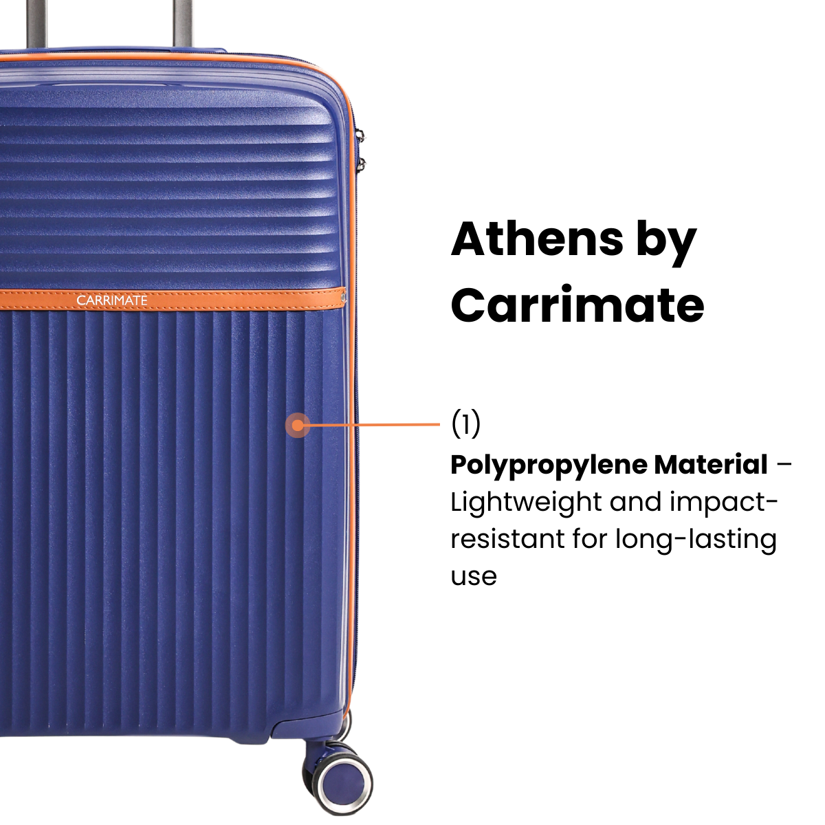 The Athens suitcase is built from strong yet lightweight polypropylene, offering durability for all your journeys.Designed with anti-theft zippers, smooth 360° spinner wheels, and an inbuilt combination lock, it ensures your belongings stay safe and secure. With a telescopic trolley handle, steady top handle, and a well-organized