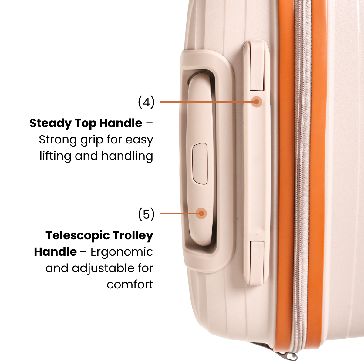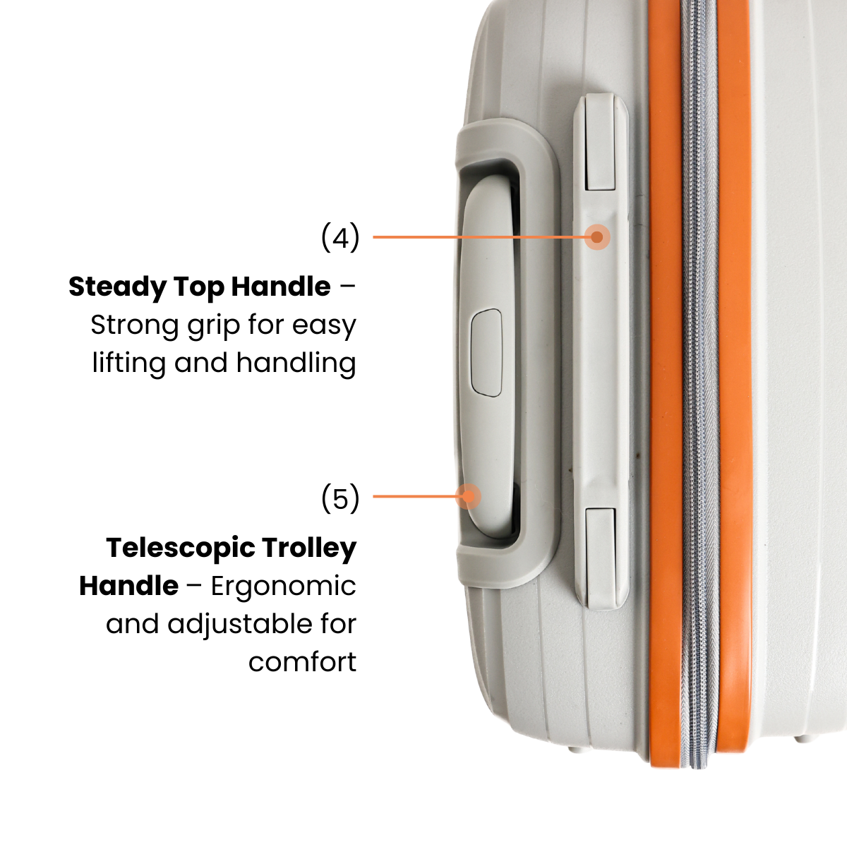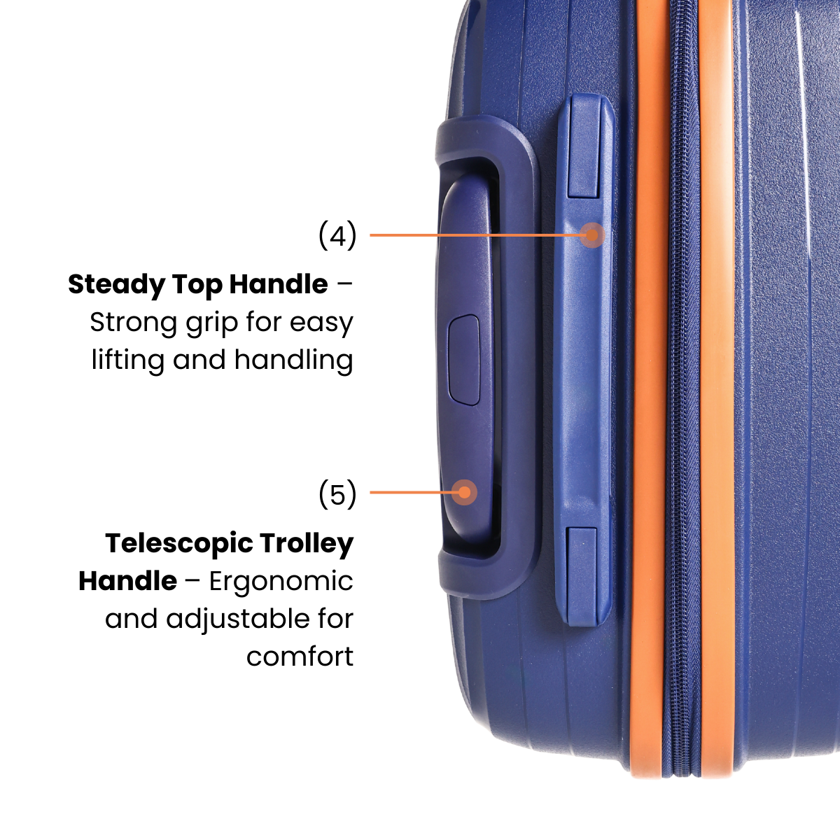 - Telescopic Trolley Handle – Ergonomic and adjustable for comfort
