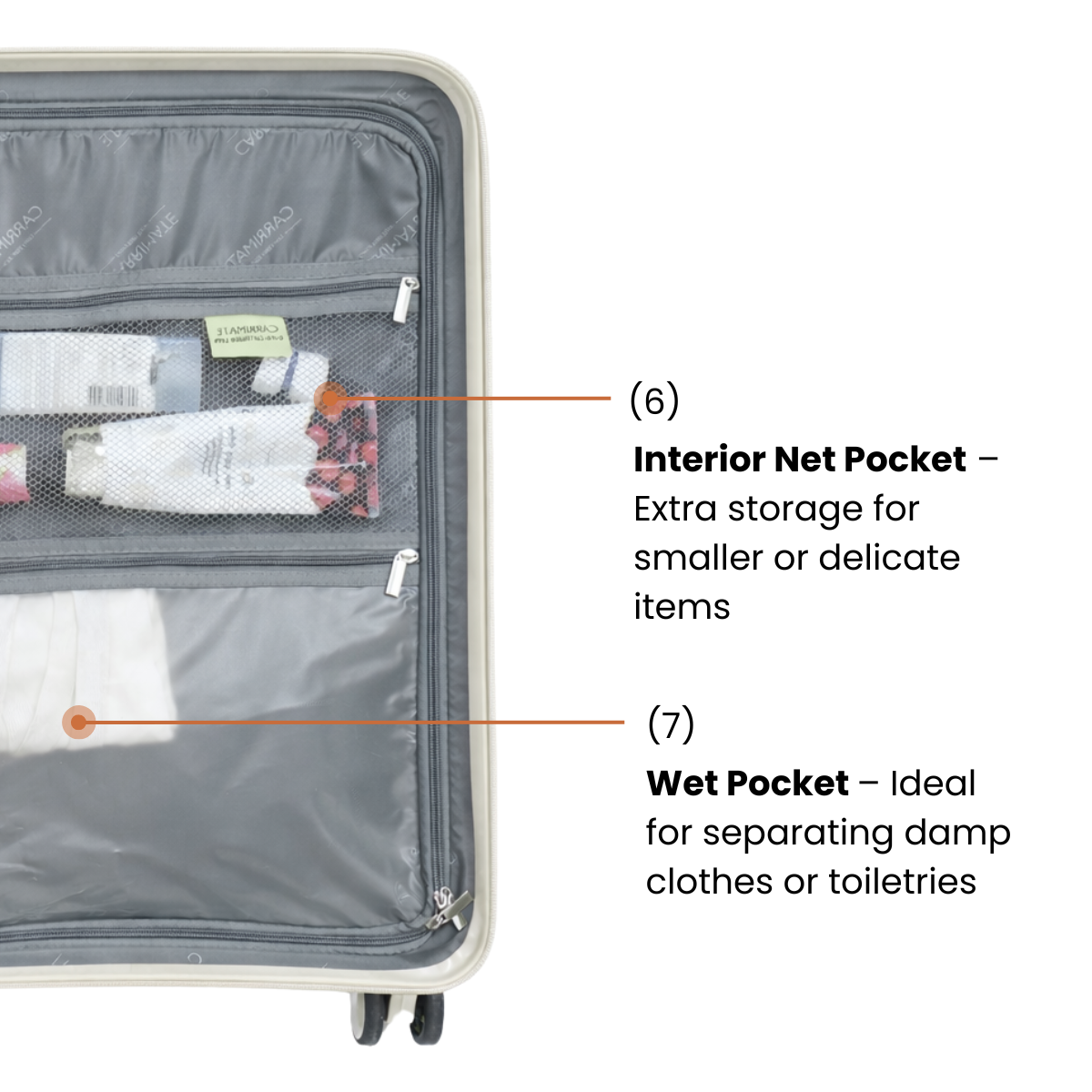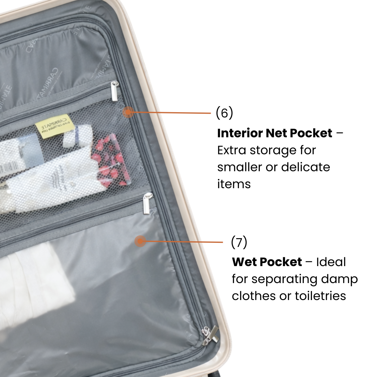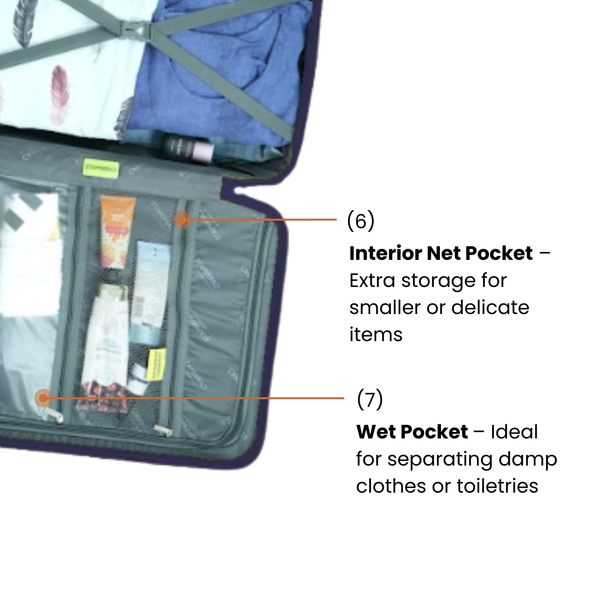 - Wet Pocket – Ideal for separating damp clothes or toiletries
